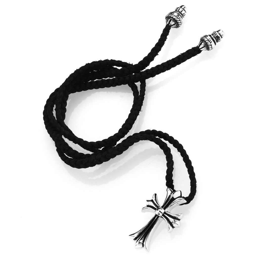 定番モチーフのクロスに職人の手で1つ1つ編まれた上質なレザーコードを組み合わせたクロムハーツの真骨頂を肌で感じられる「スモールCHクロス ペンダント」。