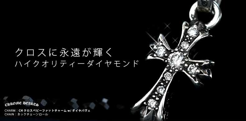 クロムハーツ ネックレス ダイヤモンド鑑別書付き!CHクロスベビーファットチャーム ダイヤパヴェ+ブラックスピネルチェーン45cm豪華セット[送料無料]