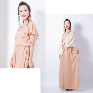 上着は結婚しなのでジャケットよりも薄いショールやボレロがおすすめです。