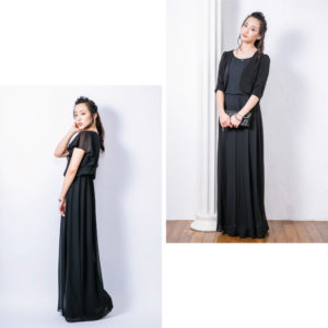 パールのアクセサリーを合わせたりショールを合わせてコーディネートしても素敵ですね。