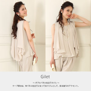 ケープをアレンジすると4WAYで着られるパンツドレスです。