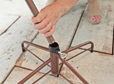 スタンドを広げて3段目のツリーを挿してねじで固定したら、あとは次々と2段目、1段目を挿します。ねじは最初の1本だけなので楽々ですよ。